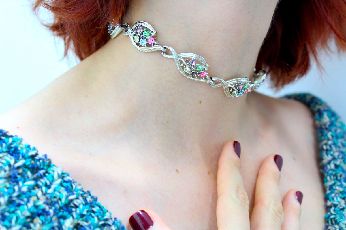 Bring out your inner Goddess with this enchanting silver choker featuring angelic colored stones. This hidden gem is ideal for holiday parties! Trust me when I say, you will treasure this rare timeless piece forever. This beauty was fit for a queen, but made for a Goddess!