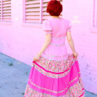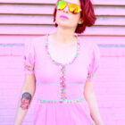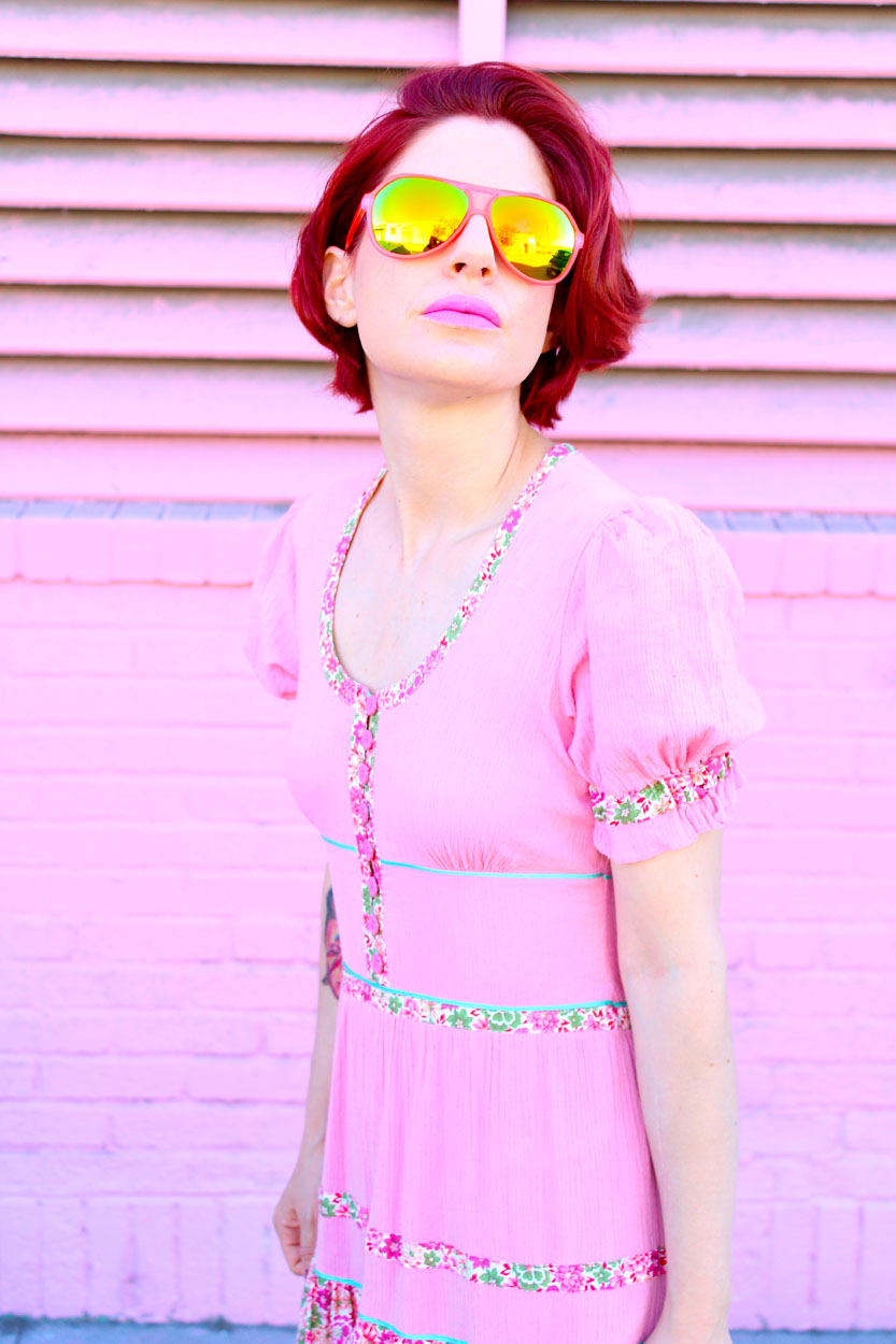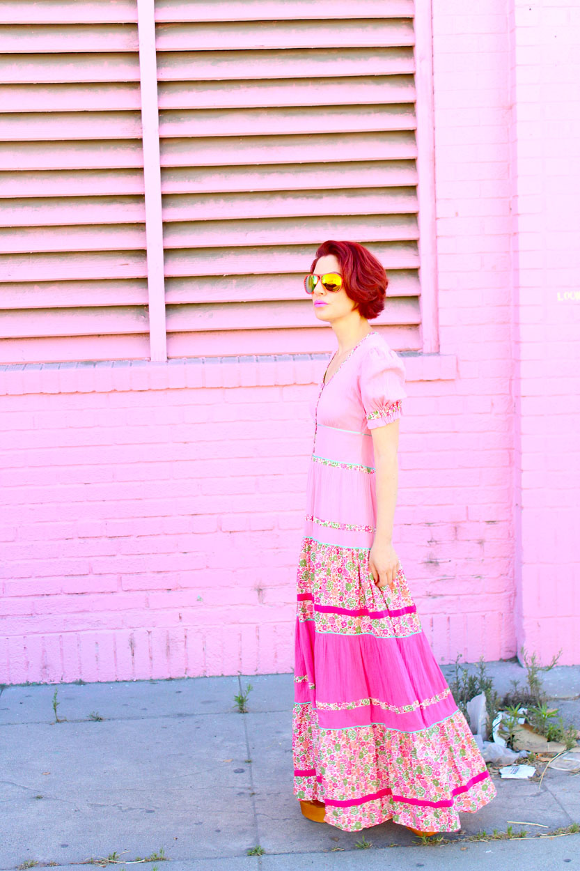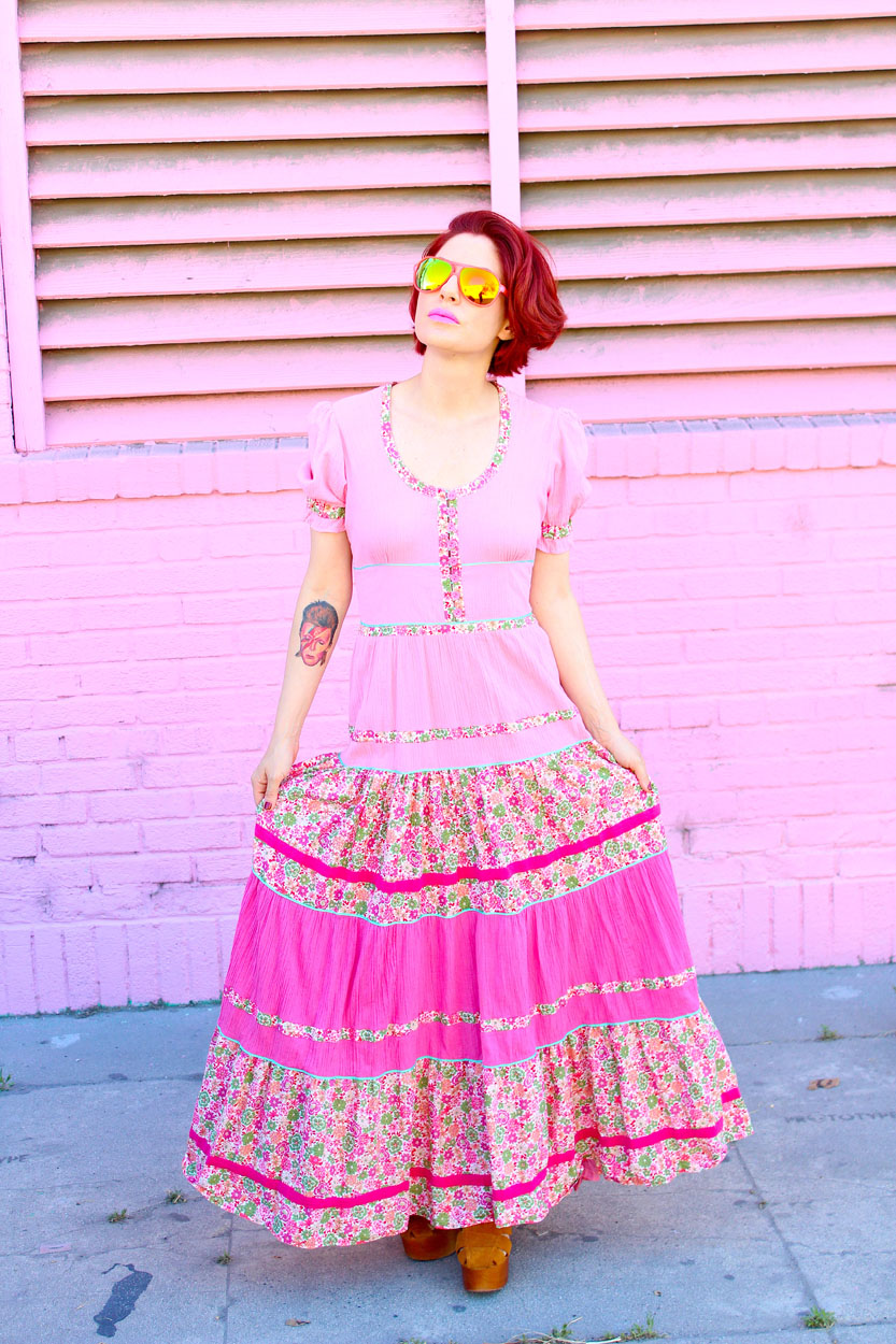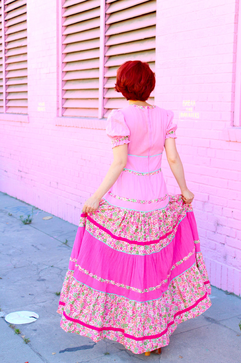 You will never find anything this dreamy again! This 70s pink gauze dress from London is loaded with lovely floral trim and classic princess sleeves. I imagine if Barbie had a bitchy older sister, she would rock the hell out of this dress!