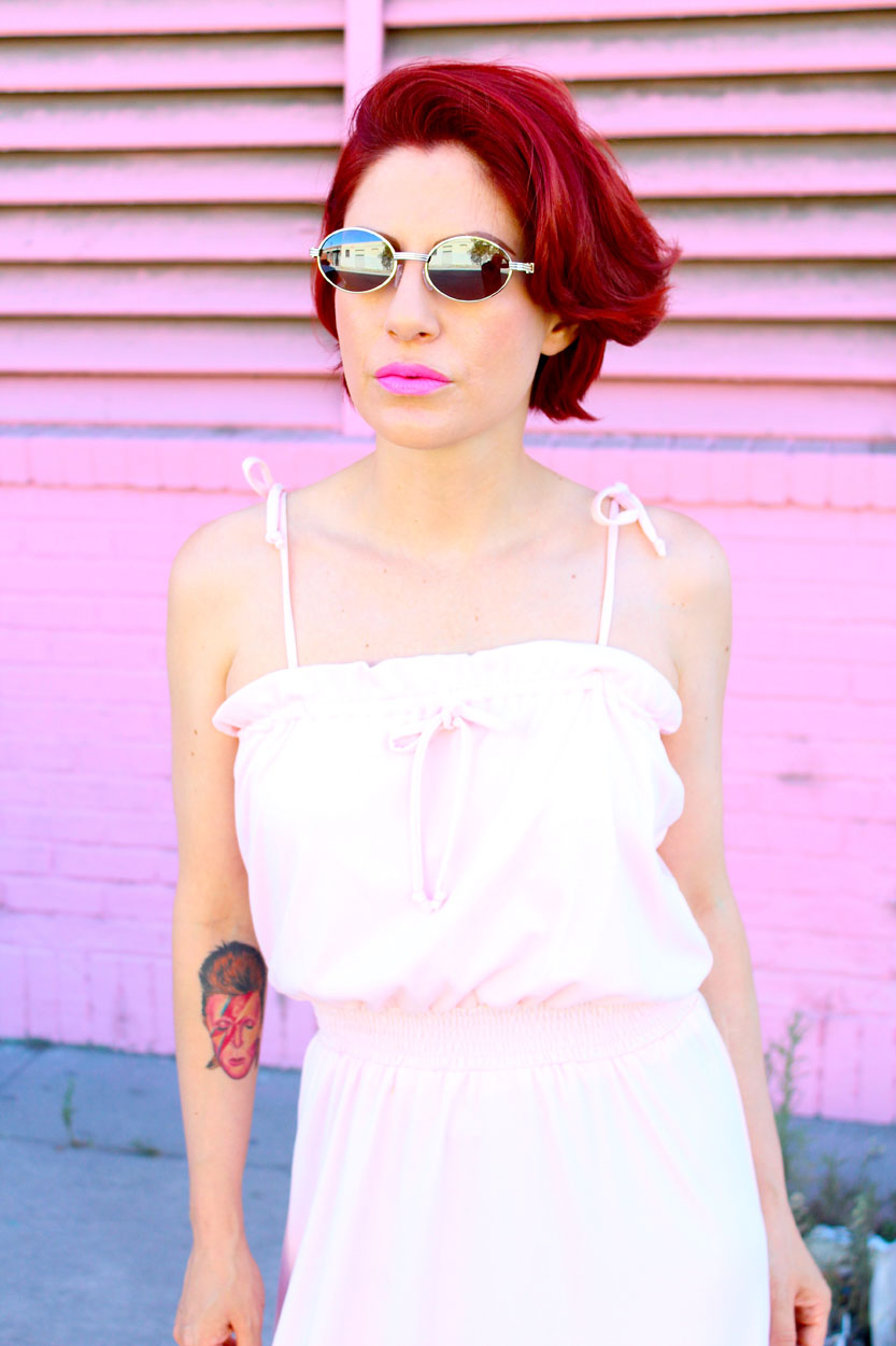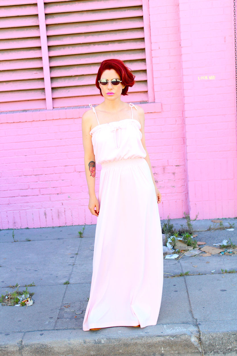 Catch that Saturday Night Fever! This perfect pale pink classic dress awaits you! Style this 60s chic gown with a leather jacket and your favorite heels for a badass event!