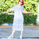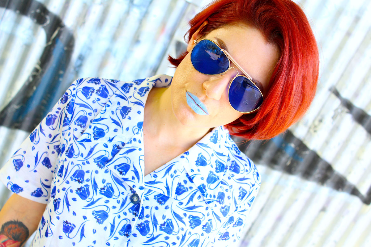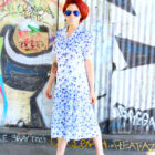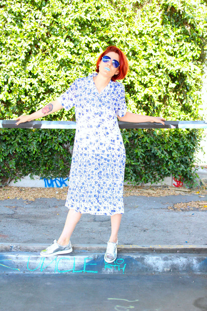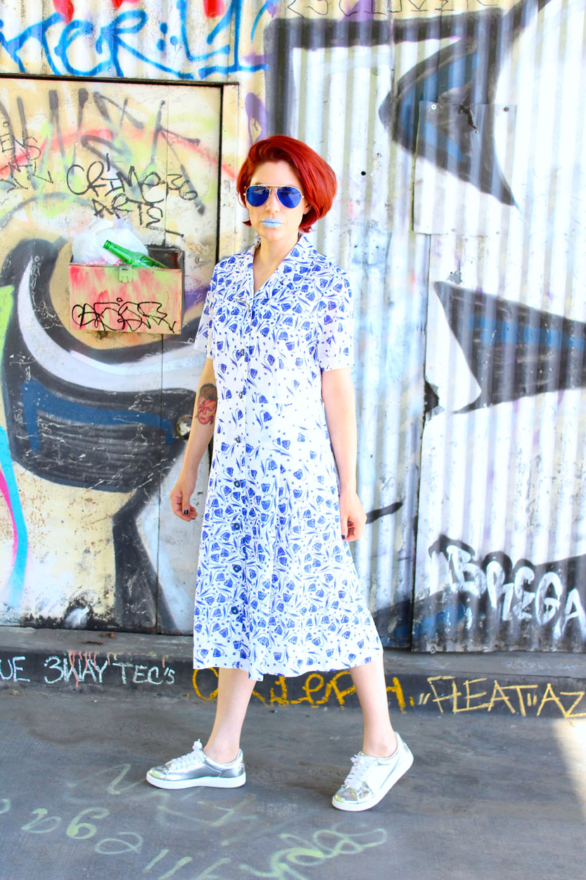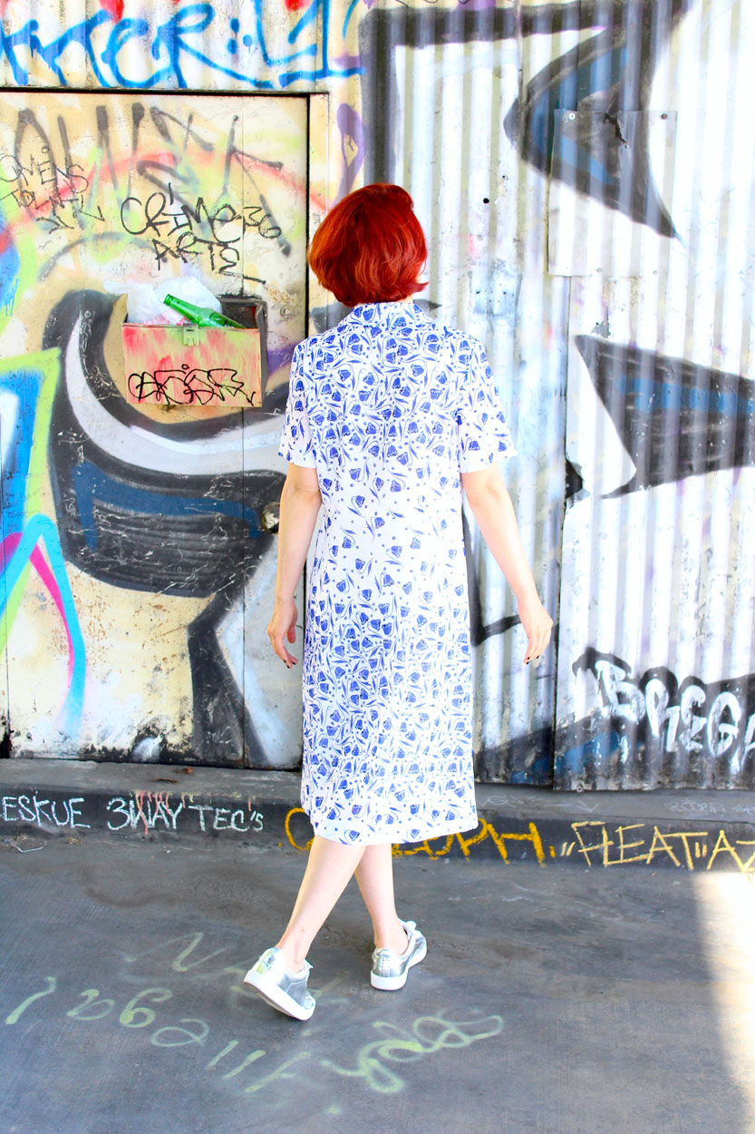 Forget the roses, dream as if you are falling into a bed of tulips! This floral Japanese shirt dress has rare printed bright blue tulips throughout. This one of a kind piece is perfect for summer, but even better for Fall! For a fashion forward look, style it with crazy tights, your favorite boots, and a moto jacket!