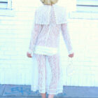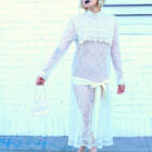 This sheer 70s boho Gunne Sax dress features the sweetest details, covered in sheer ivory lace, with a crotchet lace bib collar, satin trim throughout, complete with a satin sash. Rock the beauty with a nude bralette and nude high waisted panties, a sequins evening bag, and your favorite leather jacket. On your next evening out, embody that old world Rome-Mance!