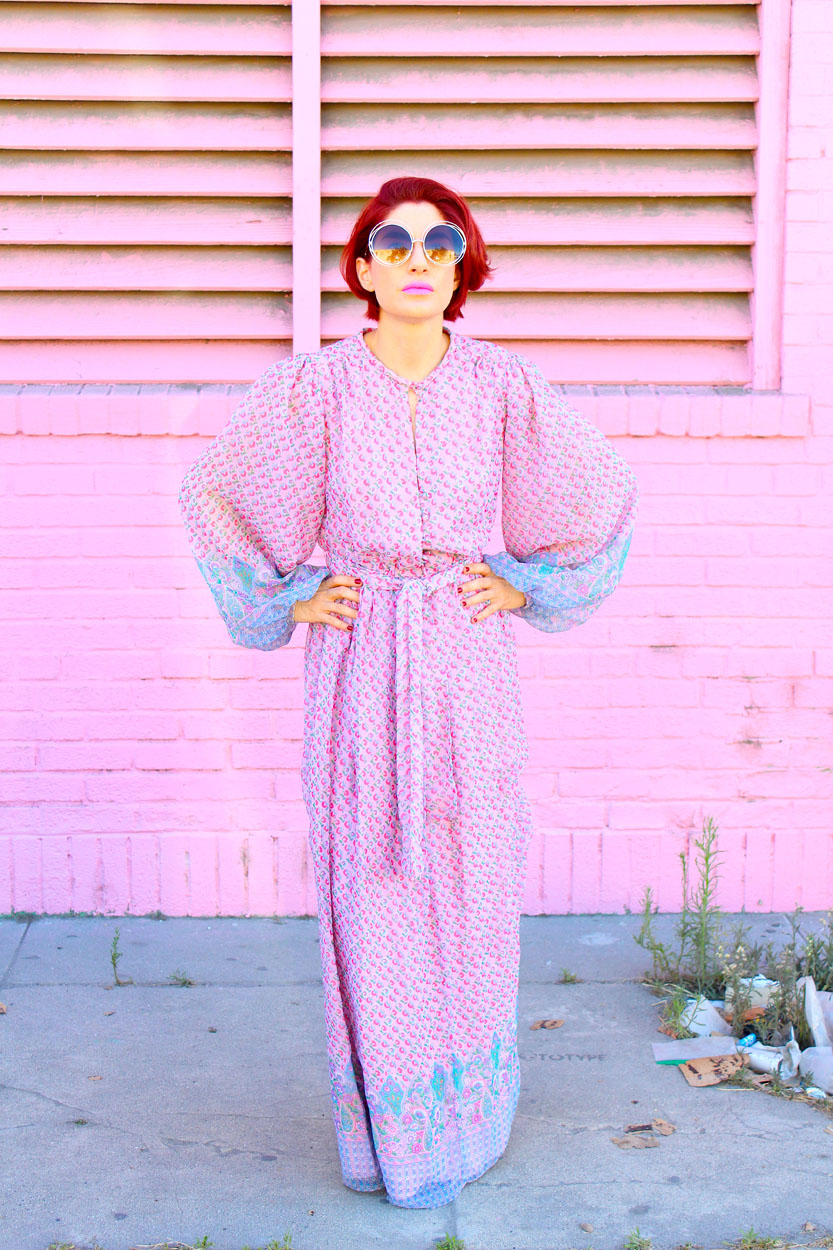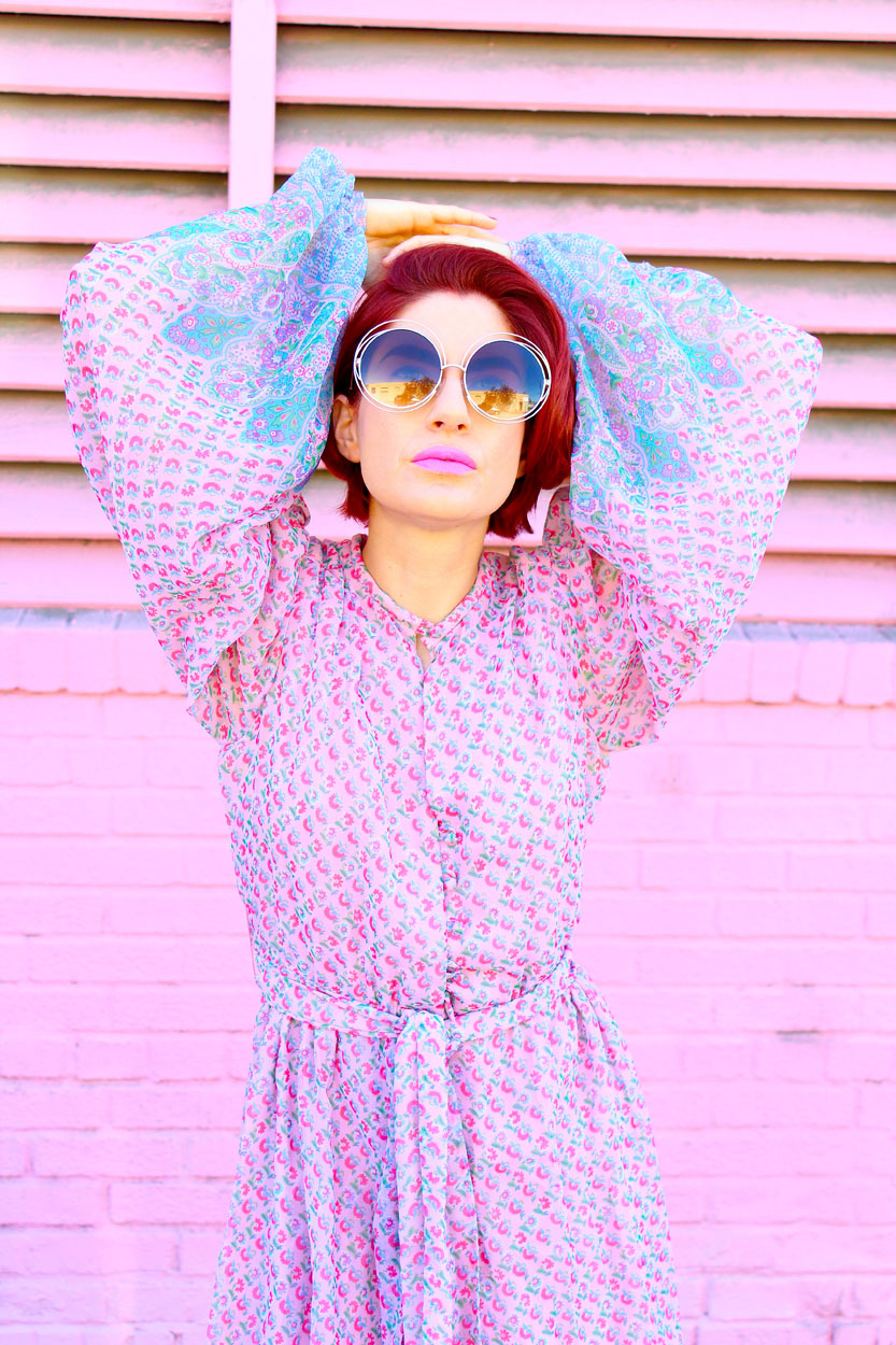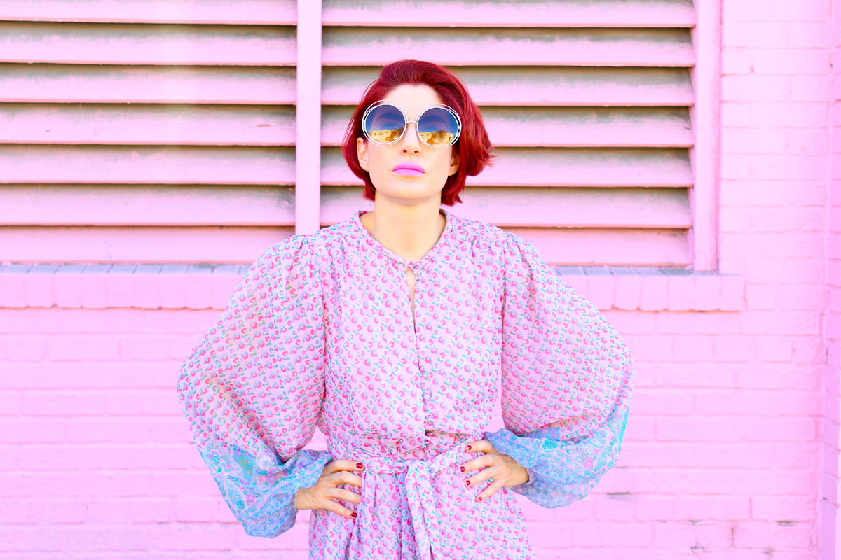 The 70s just got hit with a hippie Princess! This pink floral boho dress brings that chic high you’ve been looking for, with beautiful blue floral print details, fabric covered buttons, matching sash belt, fully lined, and sheer brilliant balloon sleeves. This dreamy dress is utterly timeless and perfect for Fall! Damn… Brunch with the girls just got a little more freakin’ elegant!