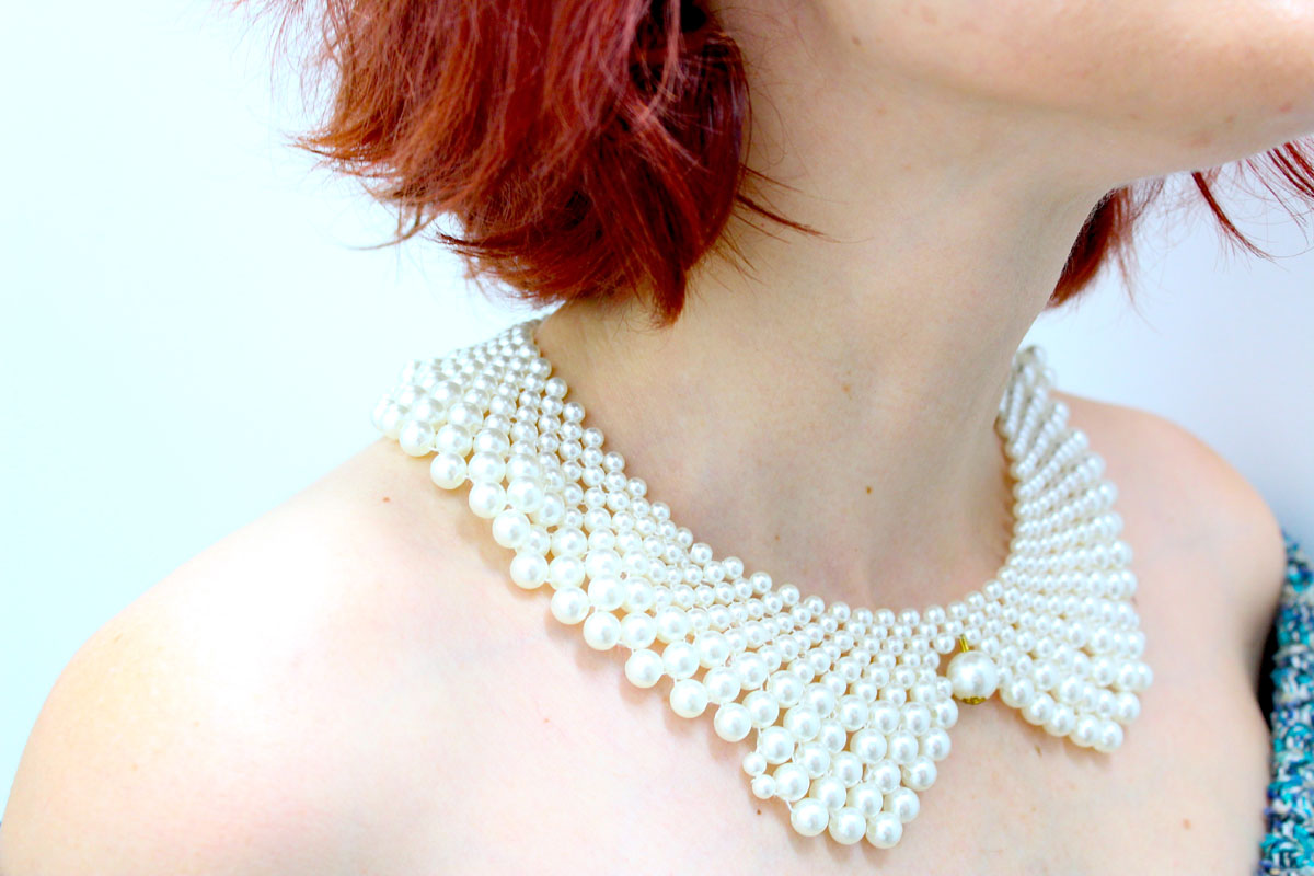 Grab some 60s sophistication with this elegant faux pearl collar. Perfect paired with any mod dress or throw it over a metallic collared blouse for fierce fashion forward look. This charming chic treasure was designed to bring style and class to any woman!