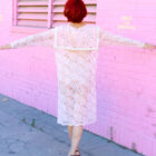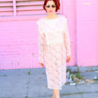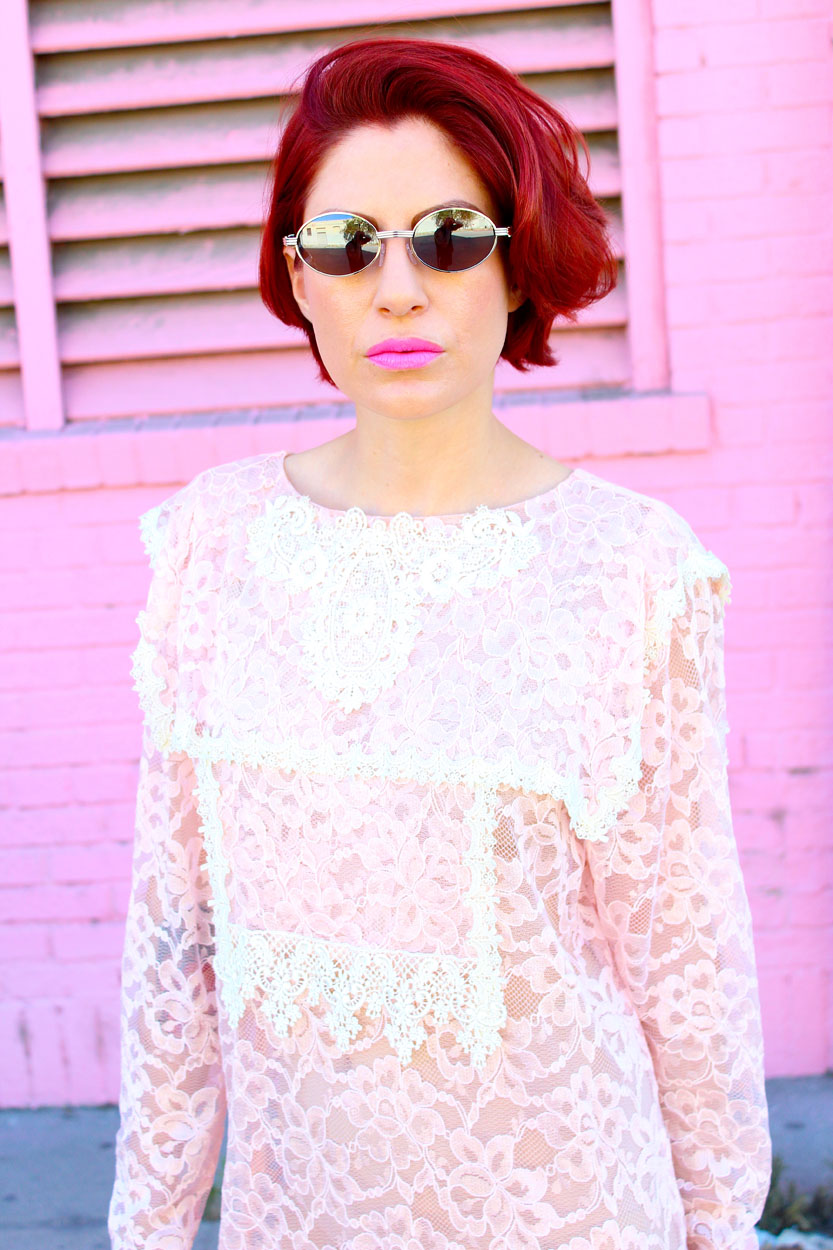 Ignite that inner Molly Ringwald with this lovely pink lace semi sheer dress, with a gorgeous lace sailor collar, and featuring delicate white lace trim. Slip this pretty little number on with high waisted under garments, sweetass kitten heels, and your favorite leather jacket! This romantic 80s beauty can easily be your next treasure for an iconic evening out!