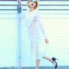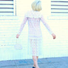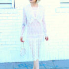 This gorgeous 70s sheer Gunne Sax dress is too fabulous for words! It features a nautical drop waist, with an oversized floral lace collar, and a dreamy gathered skirt. This sweet cocktail dress can be rocked with your favorite Manolo heels, chandelier earrings, a sequins evening bag, and a classic faux fur coat. If Gatspy through a party in France, this lovely little number would definitely be your ‘go to’!