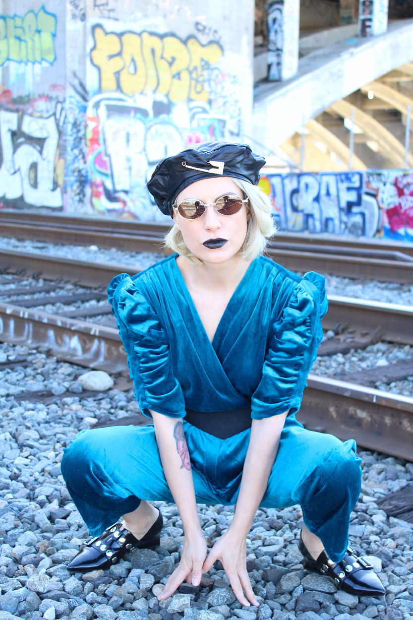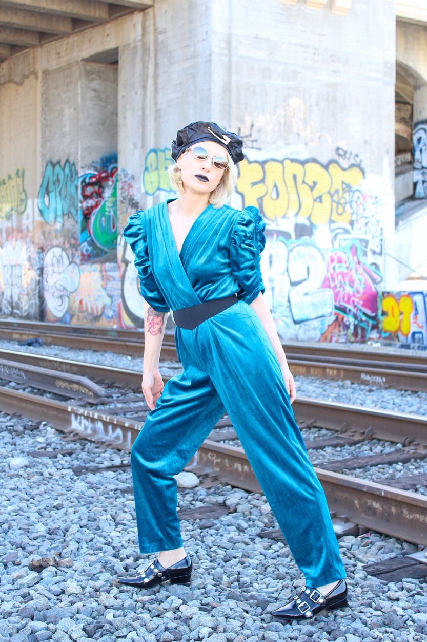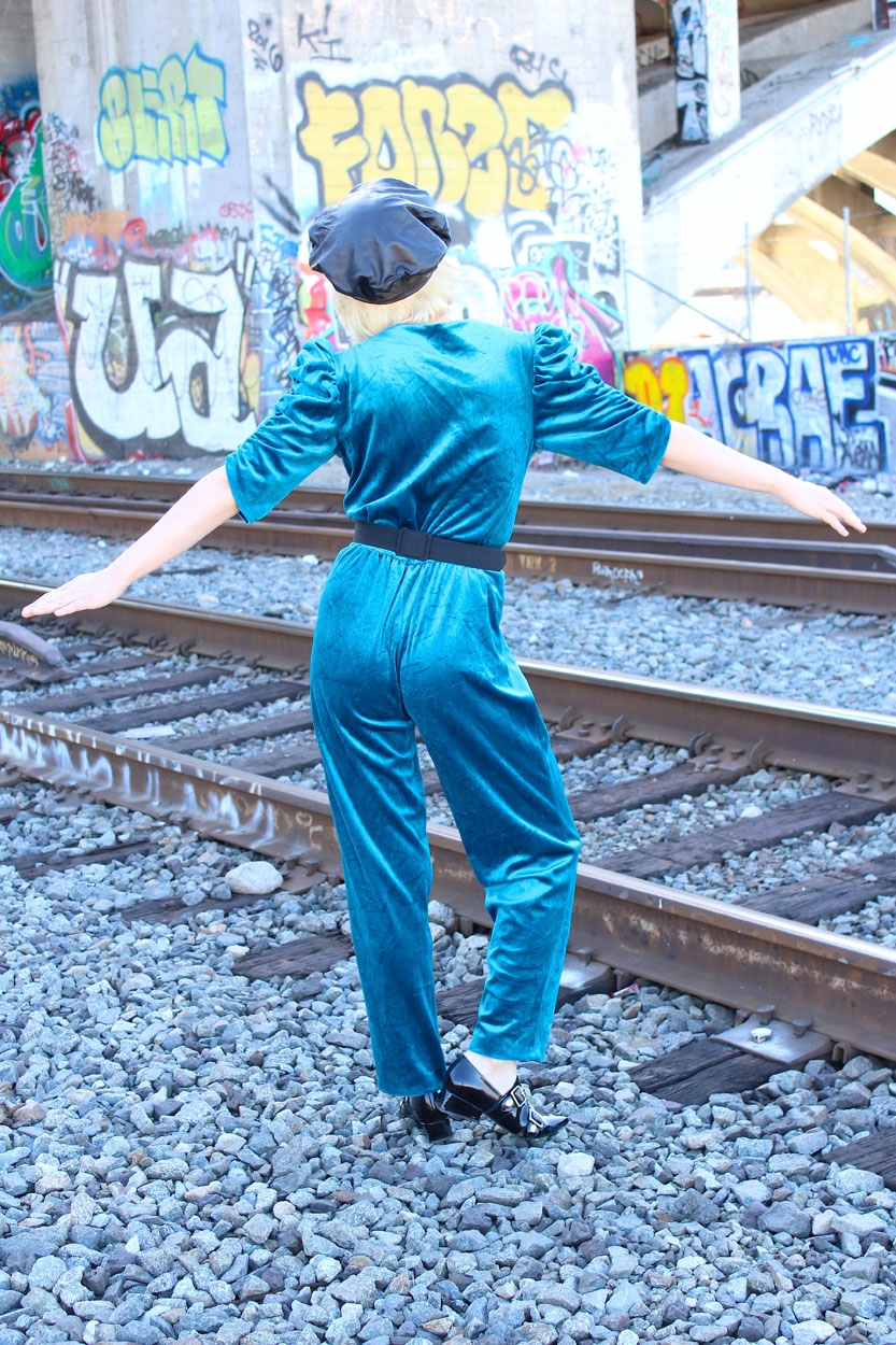 Get ready to turn some heads with this badass 70s teal velvet jumpsuit, featuring a detachable back belt and powerful puff sleeves. This rare disco chic baby is perfect for holiday parties or a hot date. A timeless treasure like this can only be purchased by a true diva!