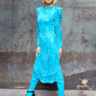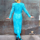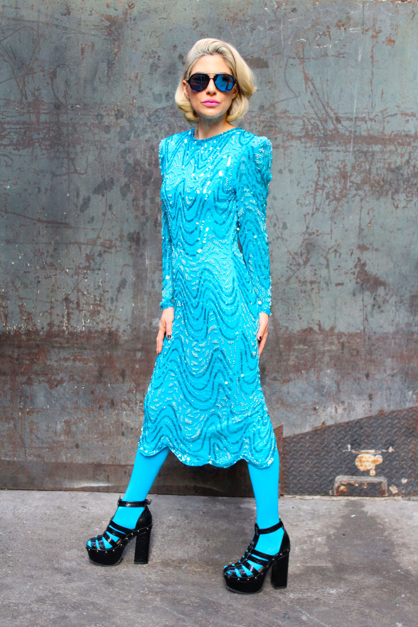 This rare 80s bright blue dress features waves of sequins and beading throughout, with a classic midi fit, princess sleeves, fully lined, plus it’s 100% silk. For a futuristic monochrome look, pair this stunning treasure with teal tights, chandelier earrings, a classic faux fur coat, and badass platforms. 2018 will be freakin’ limitless ladies!