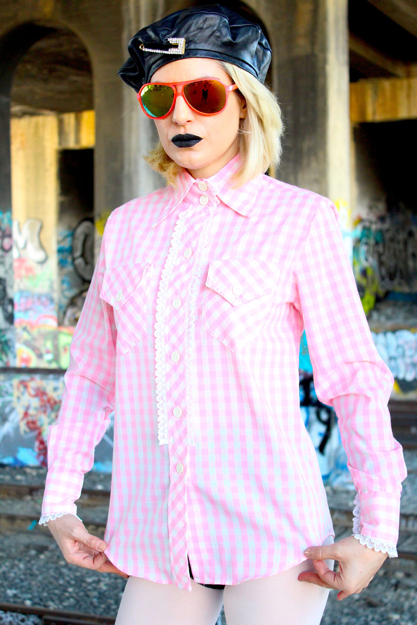 Daaammmnnn….This 70s gingham blouse has the sweetest details, featuring lovely lace trim going down the front & along the cuffs, a killer dagger collar, breast pockets, complete with classic white buttons going down the front & at the cuffs. Rock this iconic pink beauty with high waisted flare jeans or anything leather for a night out. Serious rare details like this, were born and bred for a badass country girl!