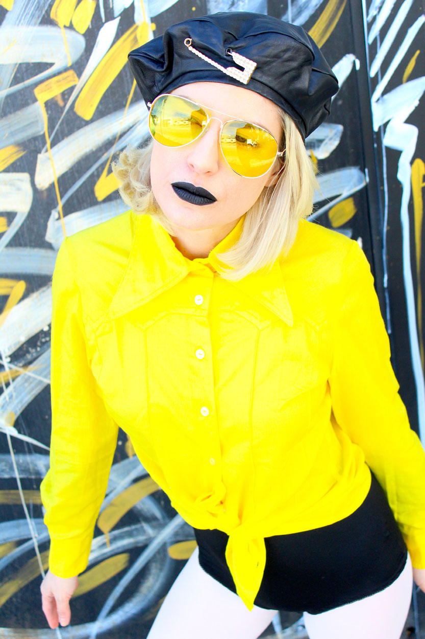 This 70s bright yellow shirt features a killer dagger collar, with a fitted silhouette, pin tuck western details, and classic buttons going down the front & at the cuffs. Rock this primary color with anything leather, cause this shit is freakin’ bananas!